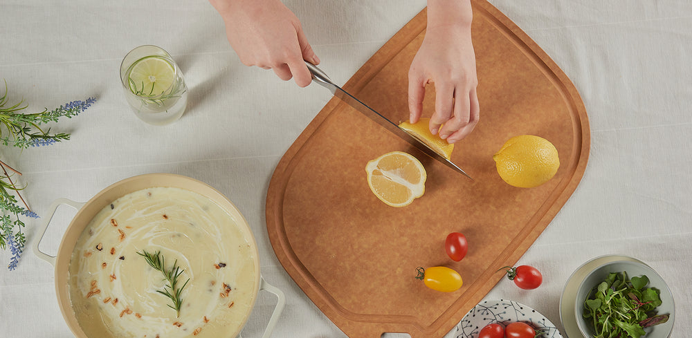 We recommend using Le Creuset Silicone Tools or wooden/heat-resistant plastic tools. Metal utensils may be used with care but they should not be used harshly or scraped over the cooking surface as this may cause damage